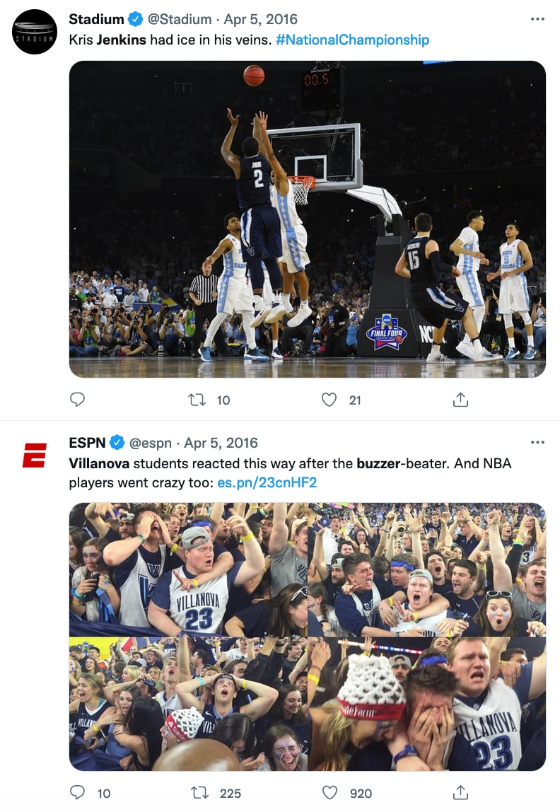 But this time, it was Villanova that came out on top, with a shot synonymous with the sport's single-elimination postseason that's both heartbreaking and hero-making.