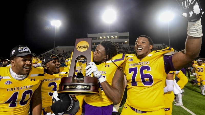 | 1976 | St.John's (Minn.) | John Gagliardi | 31-28 | Towson | Phenix City, Ala. |
