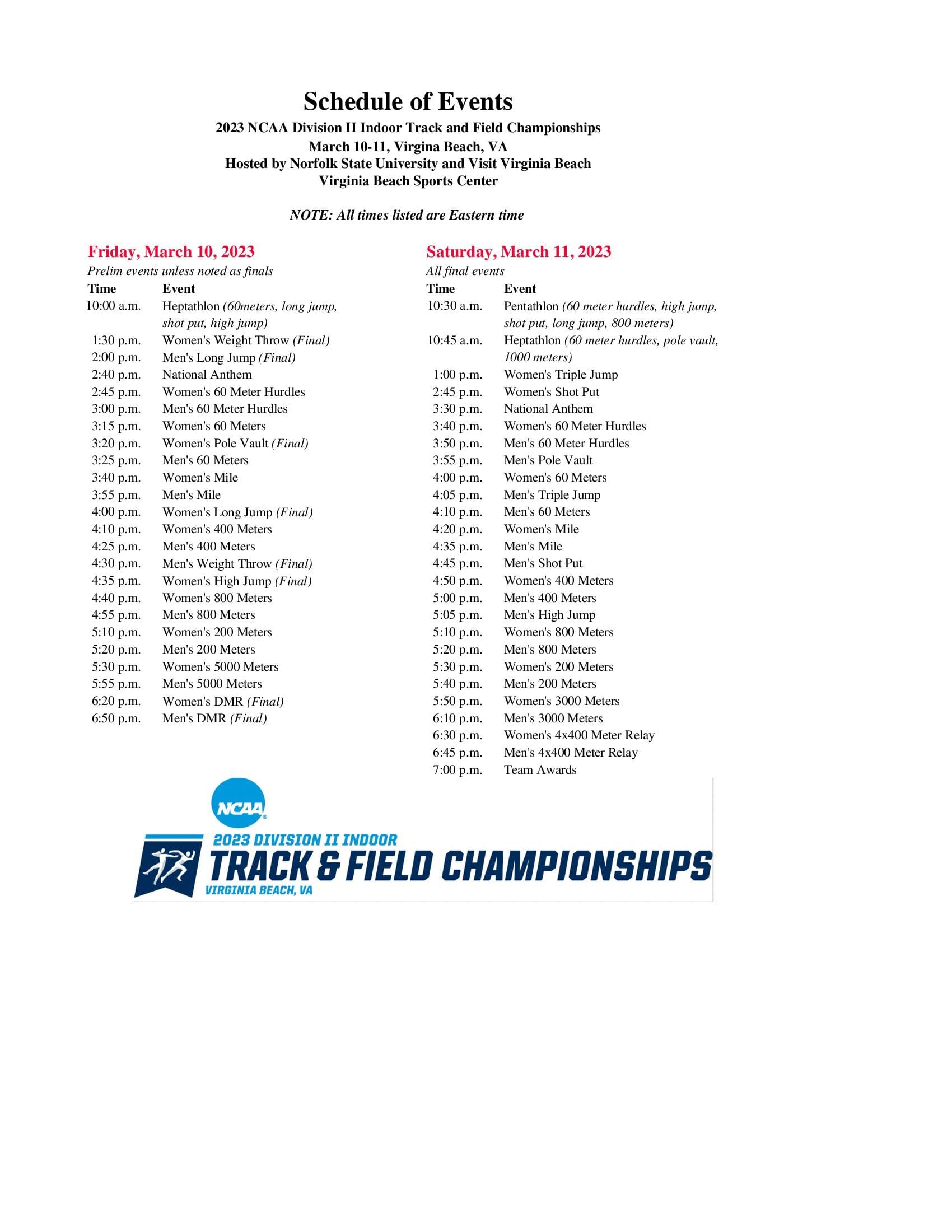 The NCAA has announced the participants for the 2023 NCAA Division II Men’s and Women’s Indoor Track and Field Championships. A total of 540 participants, 270 men and 270 women, will compete in the championships.