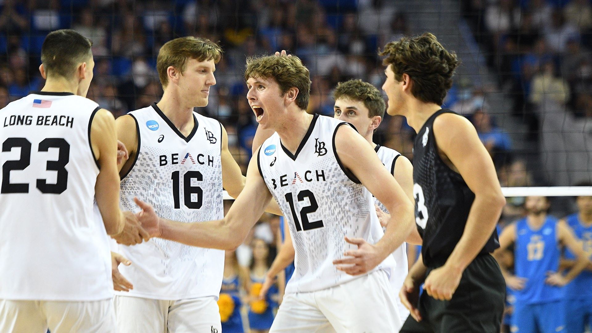 The top seed lost the first two sets 25-18 but rallied with 25-15, 25-10 and finally a 16-14 fifth-set win to take the thriller — and beat UCLA on its home floor.