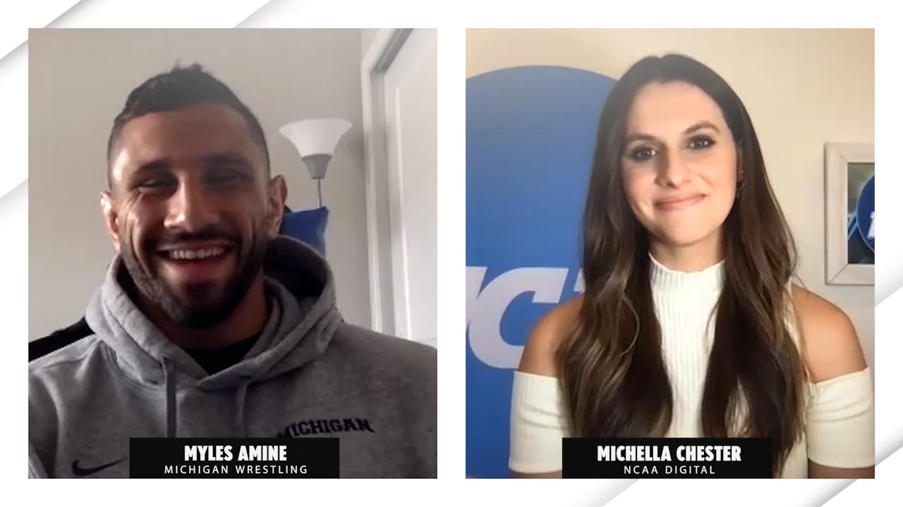 What motivates Myles Amine in his 7th year with Michigan wrestling