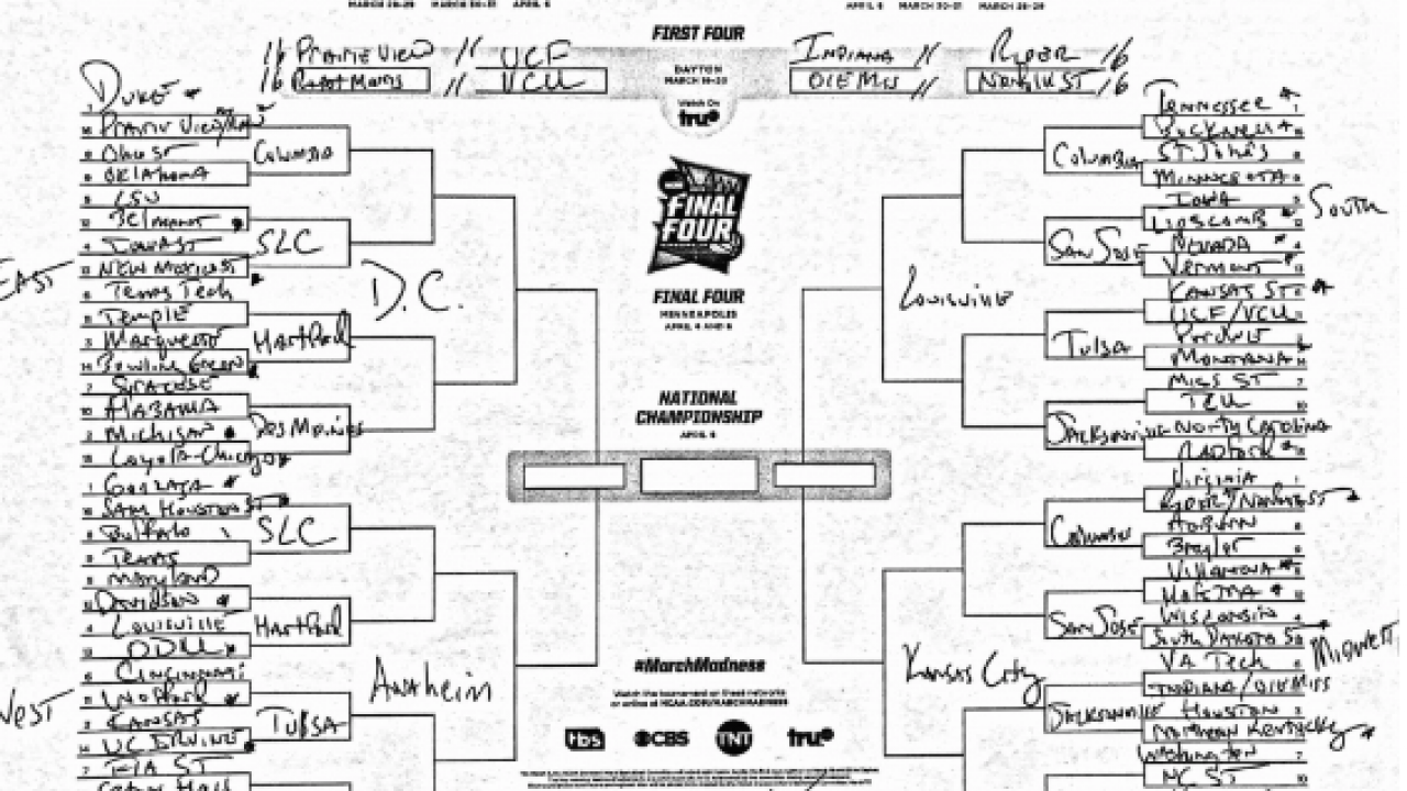 | 1 | Duke | Gonzaga | Tennessee | Virginia |