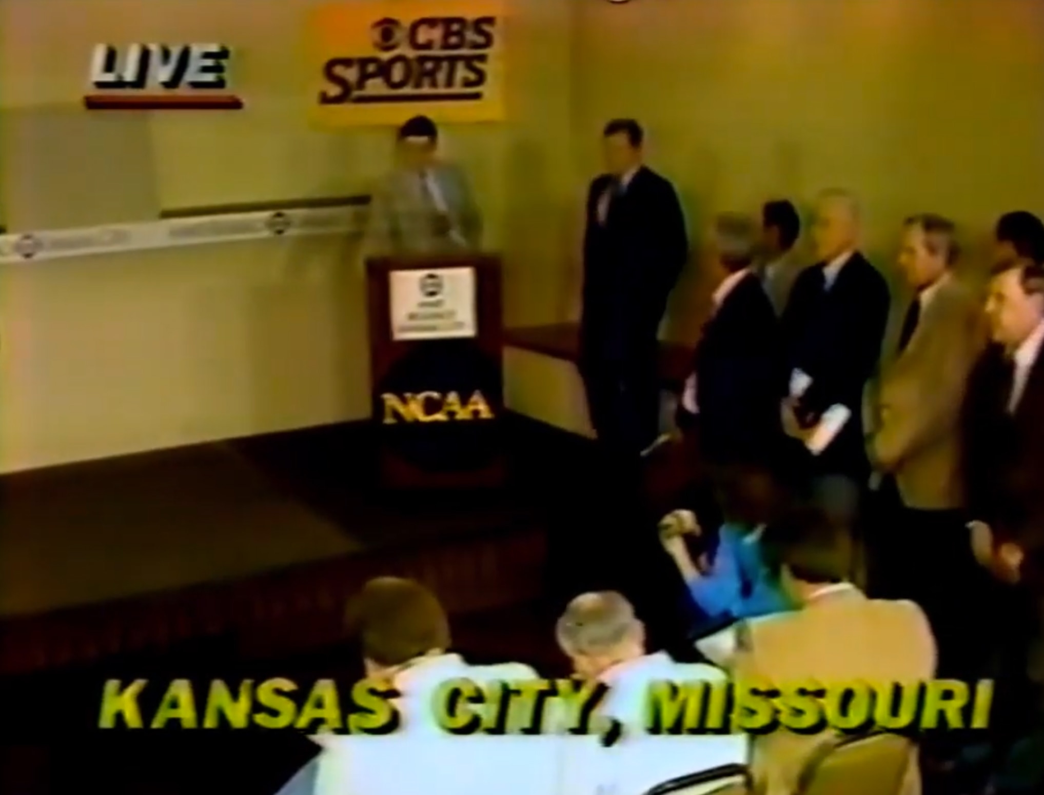 It might surprise you how modern the first selection show broadcast looks, when you compare it to what you see on TV today. The start of the show highlighted some of the scores from notable conference tournament championship games, offered some speculation on the seeds high-profile teams would receive and the regions in which they would be placed, and there was a whip-around to reporters stationed around the country with various head coaches and fan bases.