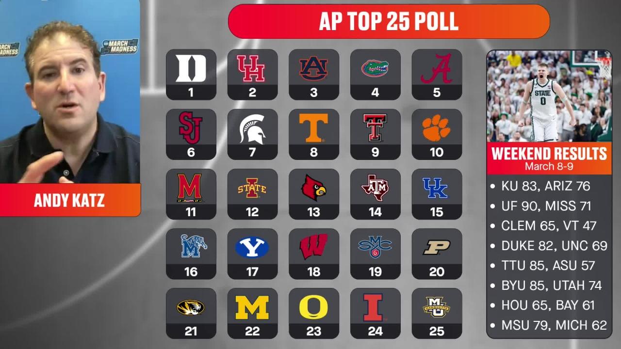 AP poll breakdown: Andy Katz Q&A, reactions to college basketball rankings (3/10/25)