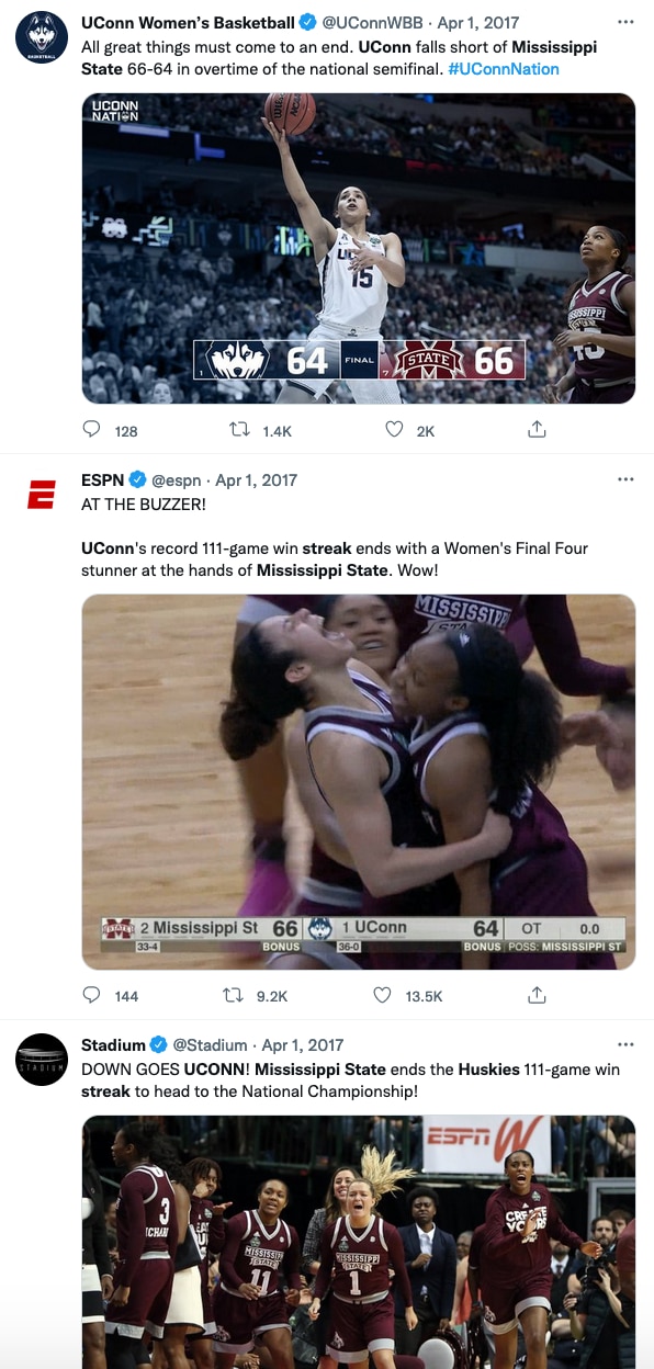 If you were on Twitter on March 31, 2017 and April Fool's Day, here's what your Twitter timeline may have looked like, as the sports world reacted to Mississippi State's epic buzzer-beater and historic upset.