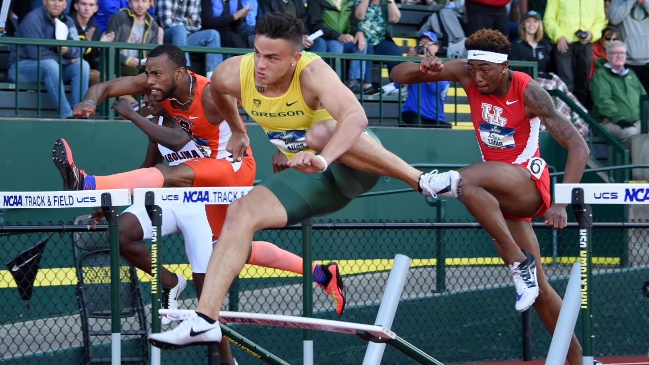Devon Allen took first place in the 110 meter hurdle at the 2016 NCAA Outdoor Track & Field Championships.