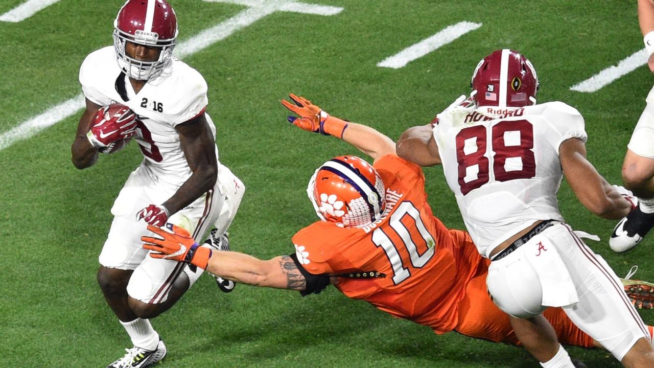 Calvin Ridley (left) and the Crimson Tide defeated Clemson 45-40 in last year's championship game.