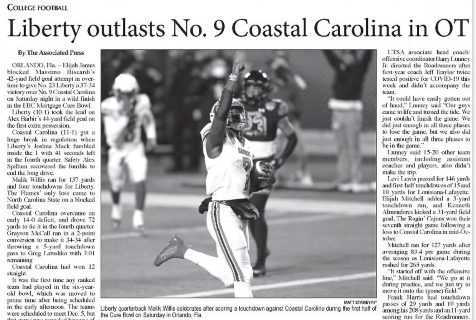 Dec. 26, 2020 (Cure Bowl) | Liberty 37, Coastal Carolina 34