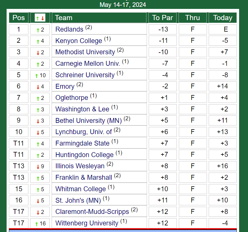 The 2024 NCAA DIII men's golf championships began with the selections on Monday, May 6, released here on krikyasport.com. Championship finals came to a close on Friday, May 17 at Boulder Creek Golf Club in Boulder City, Nevada.